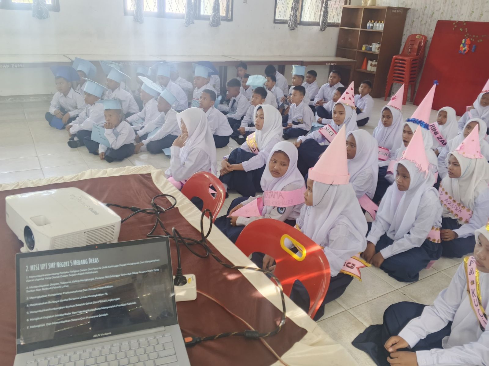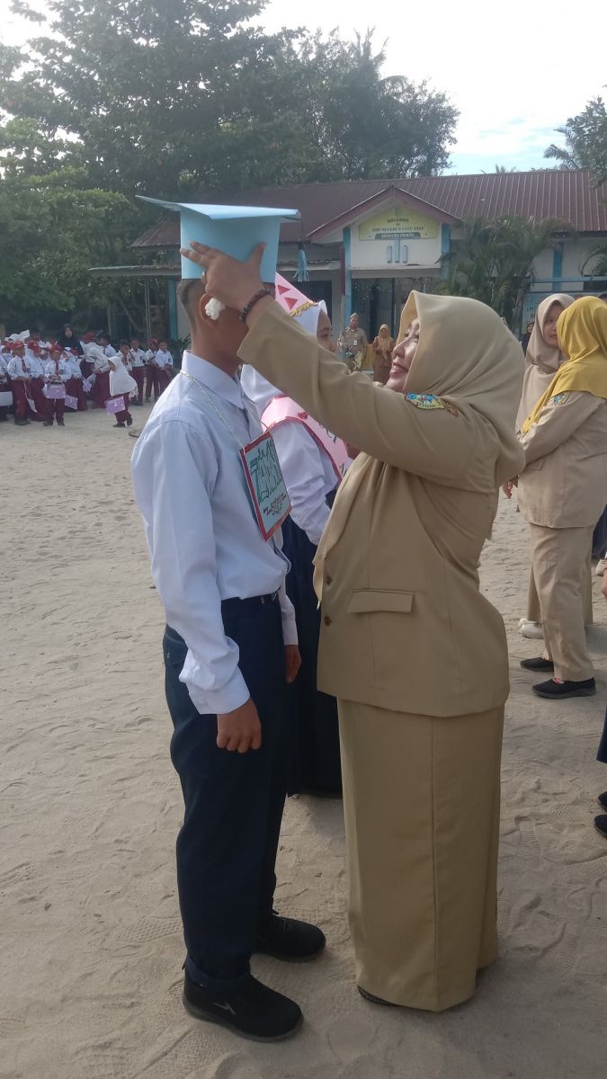 Kegiatan Pemasangan Topi Secara Simbolis untuk Siswa/i oleh Ibu Kepala Sekolah