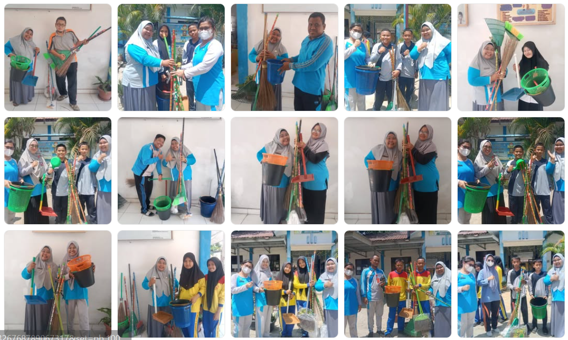 Seluruh kelas Kantor,Lab IPA, Angkringan ,Perpustakaan dibagikan alat kebersihan oleh Sarpras Dyah Moms Banara