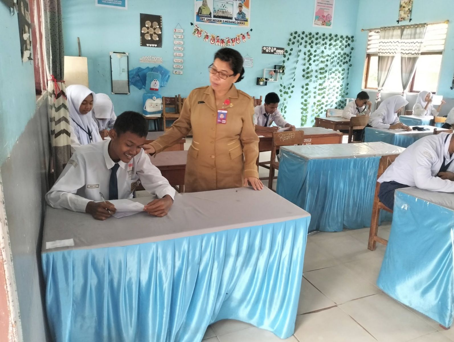 Berhubung Ibu Kepala Sekolah Nurhayani Atmadja ada kegiatan Apel pagi di kantor Bupati Batu Bara,Ibu Wakasek Natalia C.Simorangkir S.Pd terjun langsung ke ruangan untuk mengecek berlangsung nya ujian tersebut.